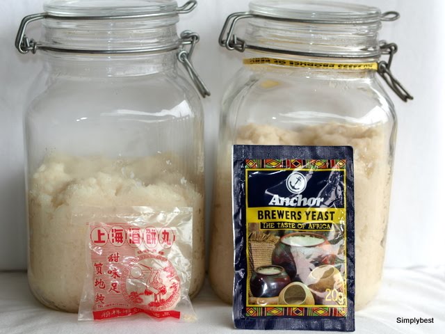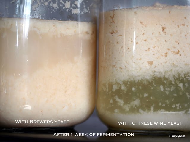 - Store rice/yeast mixture in a deep glass/porcelain jug with cover.