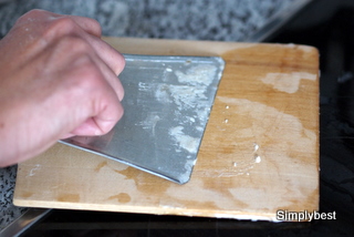After 2 or 3 scrappings, dip the scrapper into the water again to prevent the dough from sticking.
