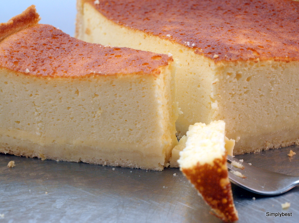 I am too lazy to rewrite the whole receipe. Please go to Swabian Cheese Cake for the full receipe and method. For your information, the method there will ensure a smooth crack-free surface.