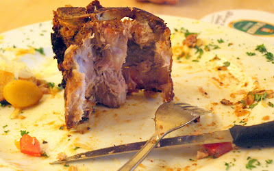 Texas style pork cutlet with panfried crispy bacon potatoes.