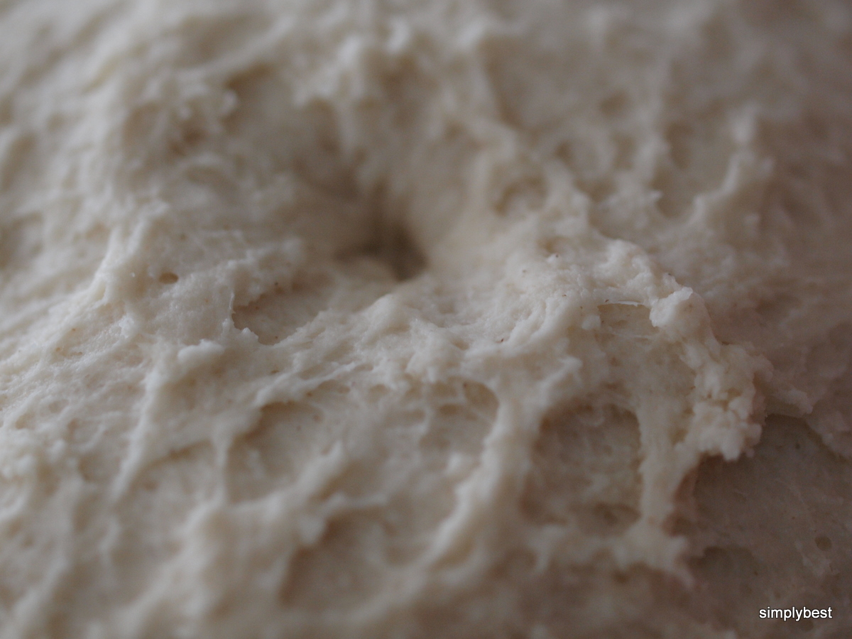 3.Add in the 'live' yeast and mix, knead (manual or with machine) till you get a sticky homogenous dough. Remember, during leavening/proofing, the flour will absorb more liquid and swell.