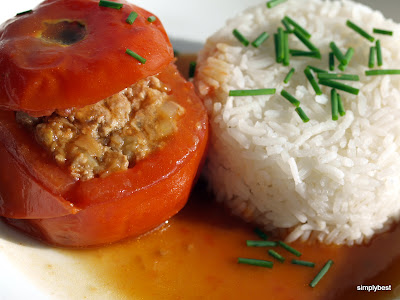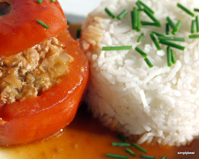 Place the filled tomatoes into a pan, add 1 cup of broth and cook/stew on medium heat for about 20 minutes. You may bake them in the oven but I prefer to 'stew' which is faster.