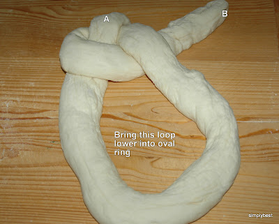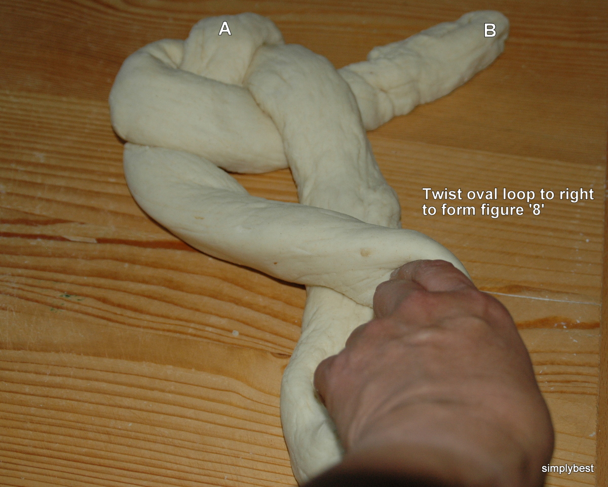 Nearly every european country has it's own version of braids. 3 strands, 4 strands, button knots, rose knots etc. After watching a video Lily sent me, I had to make this single strand braid. It looked so simple. Using only 1 long strand of dough and in 4 steps the lady made a beautiful perfect braid. Ha ! I was soooo wrong. Confirmed! . Just watching the steps is not enough. LEARNING BY DOING !
